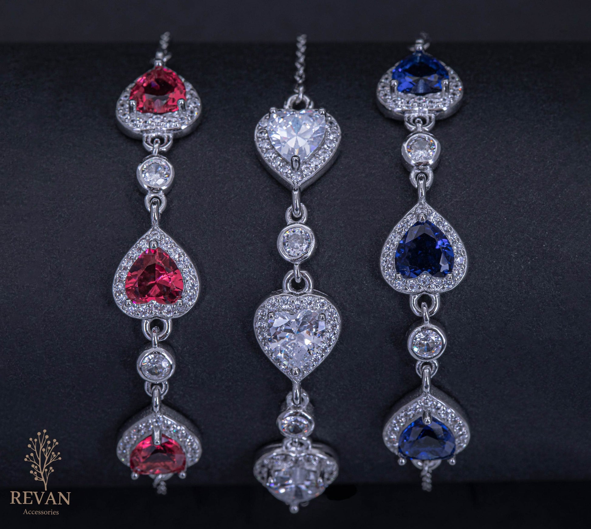 أساور فخمة بتصميم قلوب لامعة، بإطار من الأحجار البيضاء ولمسة ملوّنة مميزة من الداخل 🤍❤️💙✨